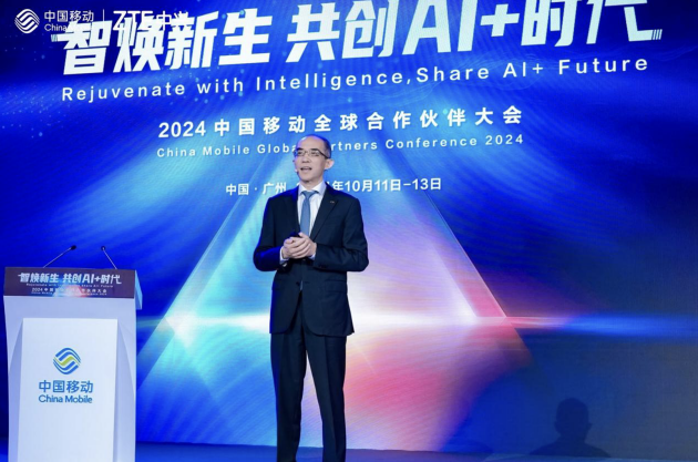 10月11日-13日,以“智焕新生 共创AI+时代”为主题的2024中国移动合作伙伴大会在广州召开,中兴通讯总裁徐子阳受邀出席大会主论坛并发表《5G-A新时代,AI+兴未来》的主题演讲,分享中兴通讯在人工智能浪潮下的数智实践与创新。